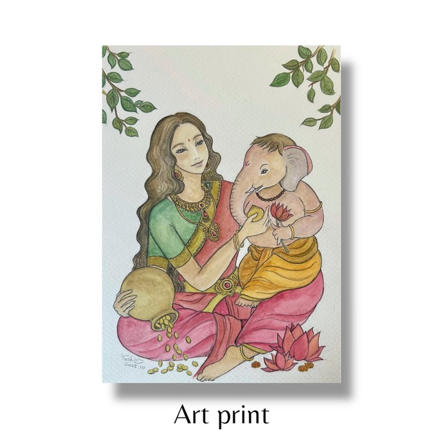 <Lakshmi&Ganesh> 豊かさと成功が同時に流れ込む、最強の開運コンビ。 ラクシュミーが「恵みを招き」 ガネーシャが「障害を払い道を開く」 このふたりをセットで迎えることで、願いが現実へとつながる循環が加速するといわれています。 金運・仕事運アップはもちろん、人生全体の流れを整えたい方、チャンスをしっかり掴みたい方の心強い守護セットです。 【プリントタイプの作品です】 気軽にお部屋に飾れて、プレゼントにも最適なアートプリントシリーズを作りました。 ピンと来る絵と出会えたら、その絵はきっと貴方にメッセージを送っています。お部屋に飾る事で護符又は癒しとなる事を願ってグッズ化致しました。 【サイズ】 A5,A4,A3からお選びください。 フレームは付いておりません、お好きなフレームを装着しそれぞれのお部屋の雰囲気に馴染ませてみてくださいね。