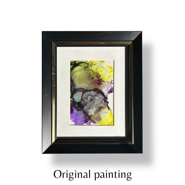 アルコールインクの透明感と偶然の美しさを活かして仕上げた世界に1つだけの原画をお部屋に。 【Silent Flow 13】 私たちの内側で 濁る想いが光を覆う日が訪れても その姿でさえ必然だったように すべては、次なる世界への化学反応。 ---------------- 制作の過程では、色彩や形だけでなく、 そこに流れる“エネルギー”を整えることも大切にしています。 額装まで終えた後も、作品が持ち主の元で心地よく呼吸できるよう、 古くから伝わるマントラや瞑想を通して 作品の波動をより澄んだ状態に整えています。 お迎えいただいた方の空間に、 穏やかで創造的な流れが訪れますように。 額装済みで背面にはスタンドとフック用の金具も装着しており、置き型・壁掛け、どちらでもすぐに飾っていただけます。 作品サイズ: 12.5cm×8.8cm 額縁: 23.5cm×19cm ※一点物のため再販はありません ※送料別(タイからeパケット対応で10-15日でお手元に届きます)