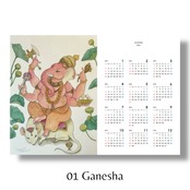 2025に引き続き、ヒンドゥーの神々をモチーフに描き上げた作品達を壁掛けタイプのカレンダーに起用しました。ネパールでの仏画修行の経験やチベット密教の学びにより2025カレンダーの作風との異なる雰囲気やエネルギーを感じながらお気軽にご鑑賞いただければと思います。